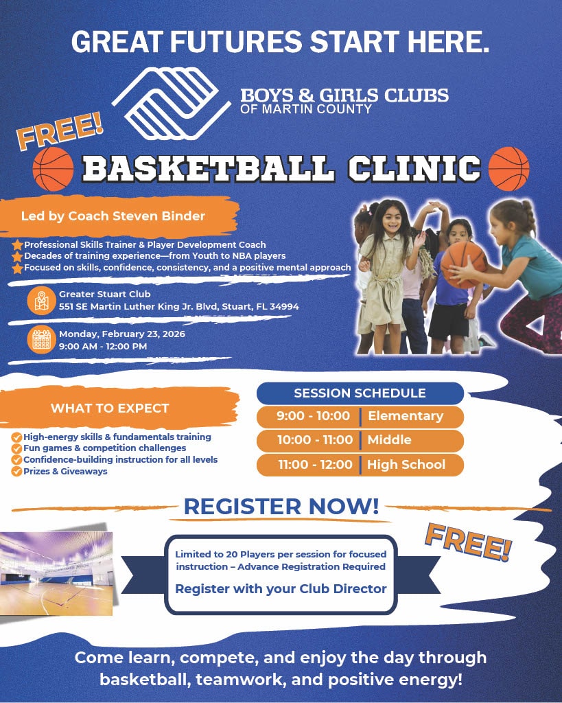 Stuart, FL — Project New Step Foundation is proud to announce a FREE basketball clinic for local youth, led by Steven Binder, on February 23rd at the Boys & Girls Club of Stuart, Florida.